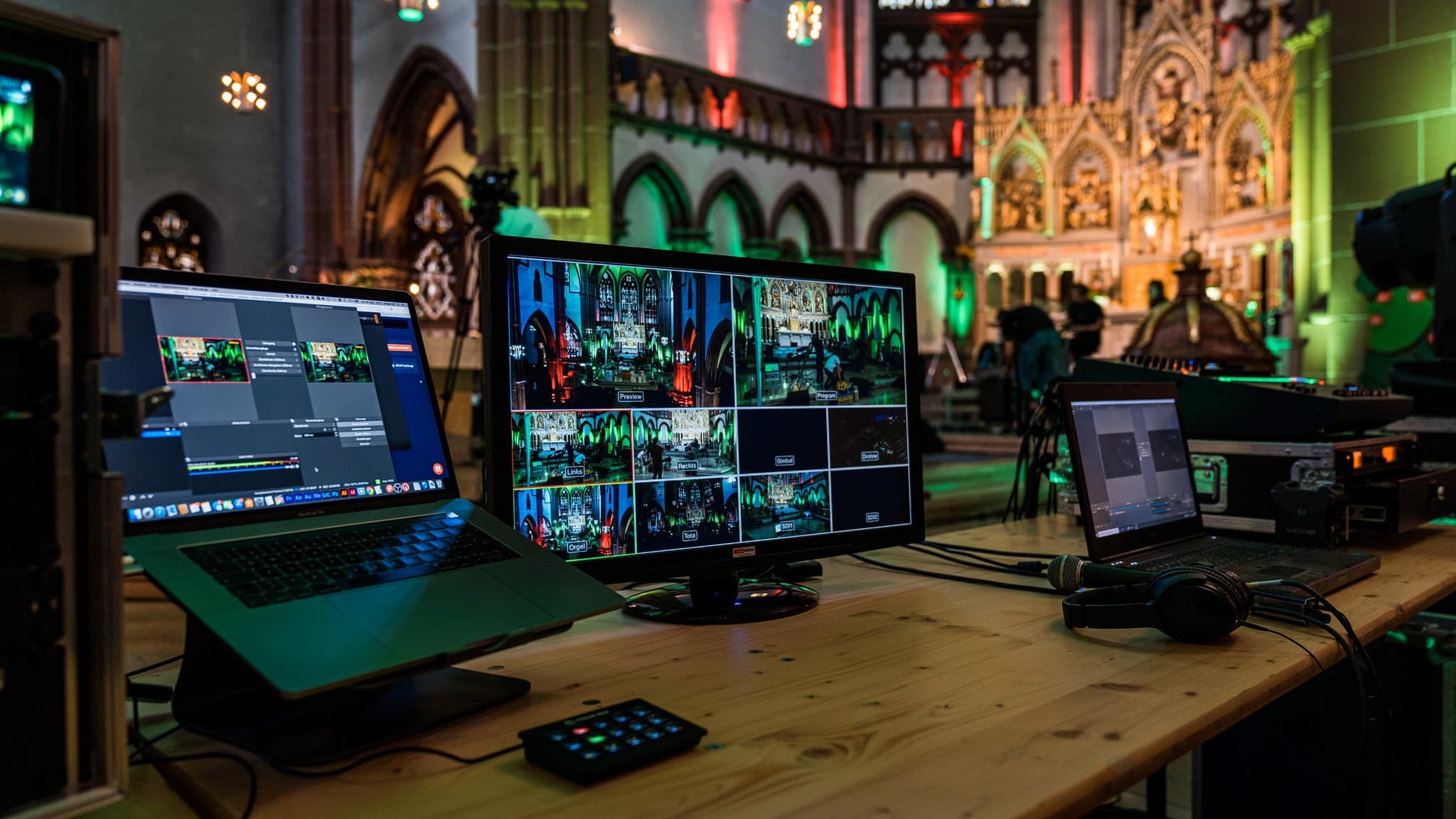 Events und Livestream greifen bei uns ineinander: Ein Team, ein Lager, ein Ansprechpartner. Ob reine Präsenzveranstaltung, Produkt-Launch, Kongress, Mitarbeiter-Event oder Hybrid-Produktion – wir planen, stellen die Technik und regieführen Ihr Event von der ersten Skizze bis zum letzten Abbau.